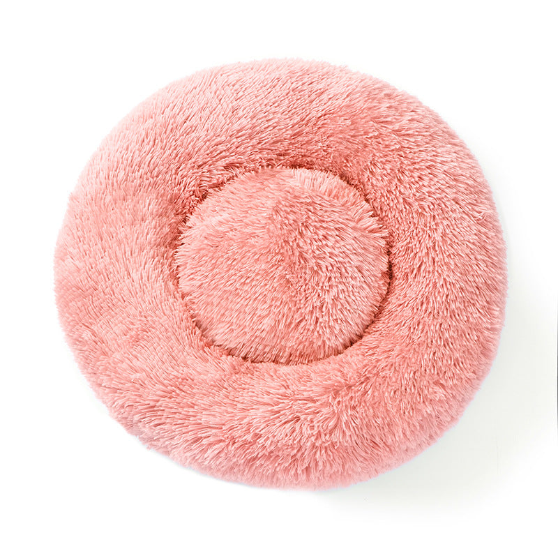 Answer 1: The bed is crafted from ultra-soft long plush fabric, designed to provide warmth and comfort. This material is safe for pets, as it is made to be gentle on their fur and skin while helping to ease anxiety and stress.