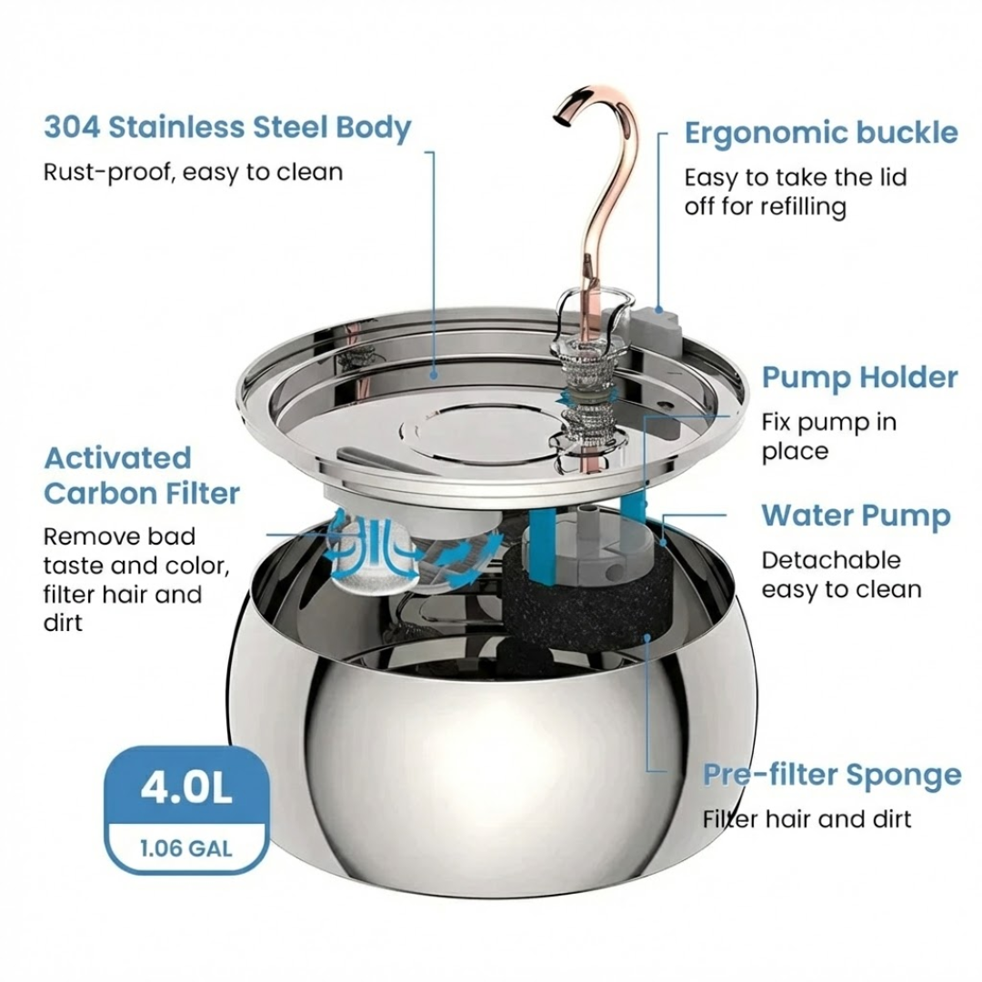 After 12+ months of research and testing with vets, breeders, and senior dog owners, we created what we believe is the most functional and effective hydration fountain available for long-term dog health.