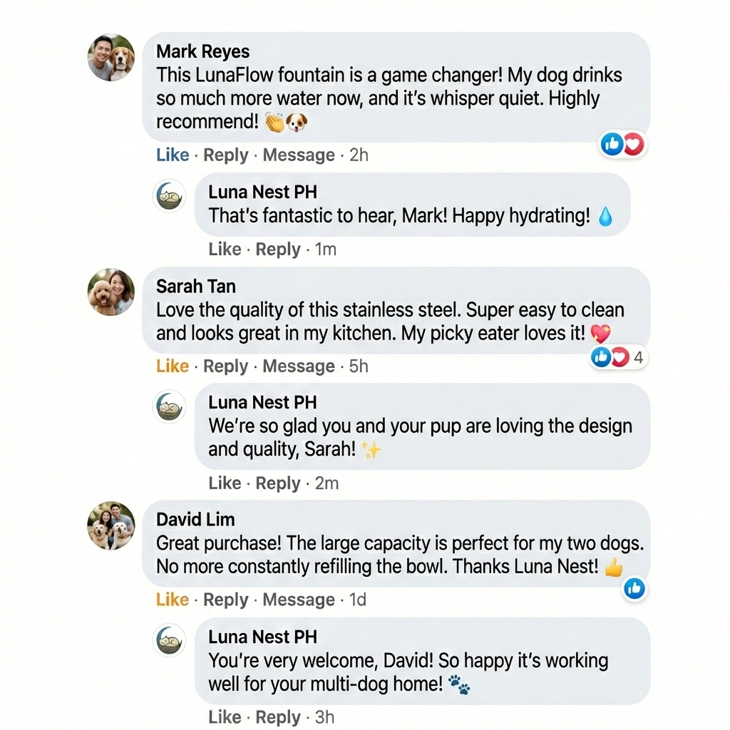 In the wild, animals drink from moving water sources — never stagnant bowls. LunaFlow™ mimics that instinct, giving your dog a gentle stream of clean, filtered water they naturally want to drink from.